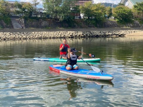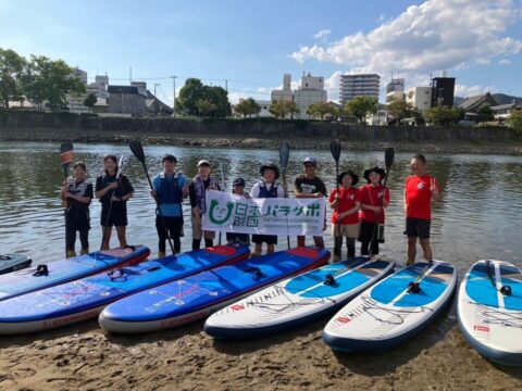 教室に参加したのは、県立中央特別支援学校に通う2名の子供達でした。指導にあたったのは2名のサップインストラクターの西川隆二先生(MAGICISLAND・オーナー)と加地信幸先生(広島文化学園大)のほか、6名のボランティアスタッフがサポートを行いました。ボランティアとして参加した学生は、東京都の特別支援学校教諭(保健体育)採用試験に現役合格した沖野一平くん、陸上競技部の福品喜己さん、元陸上長距離アスリートの大西響さんの3名でした。教室の様子は広島テレビ「テレビ派」でも放送されました!