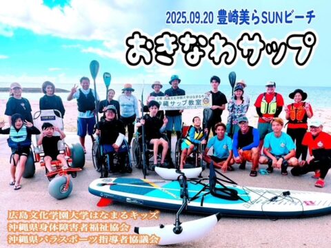 広島文化学園大学「はなまるキッズ」の活動報告です。 9月19〜21日 、 社会福祉法人 沖縄県身体障害者福祉協 会と共同で、沖縄県内で初となる障害児者サップ教室を開催してき ました。