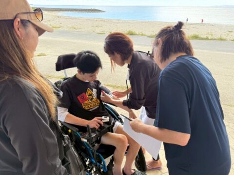 今回のユニバーサル SUP 沖縄体験会に参加して、自分がSUPで障害者の乗ったボードを牽引しながら1番印象に残っているのが、 いろいろな障がいのある方とSUPをすることは、とても楽しいことだと感じたことです。今回の SUP では、急な雨が降ってきて、 海に出られない時間があって、 その時に障がい者の方達が暇な時間を過ごすことがないようにしたいと思い、一緒に話をしたり、遊んだりするなど、自分からいろいろと行動することができました。今回の活動でも、またたくさん勉強になることがありました。 これからもこのような活動に積極的に参加して行きたいと思います 。